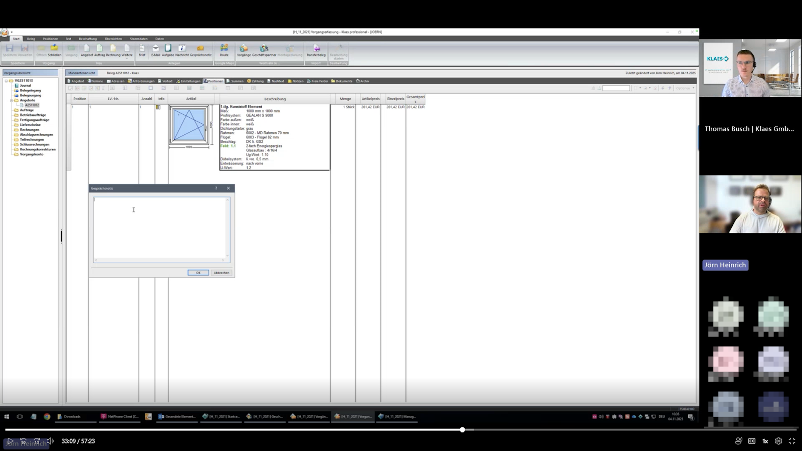 Wie können Fensterbauer ihre täglichen Abläufe digital und übersichtlich gestalten – ohne dass wichtige Informationen auf Zetteln verloren gehen? Genau darum ging es in der Web-Präsentation „Bestens organisiert mit dem Klaes Info Manager“, die von Thomas Busch aus der Klaes-Anwendungstechnik moderiert wurde. Praxispartner war Jörn Heinrich, Geschäftsführer der Heinrich GmbH & Co. KG aus Wetzlar, der das Tool bereits erfolgreich im Einsatz hat.