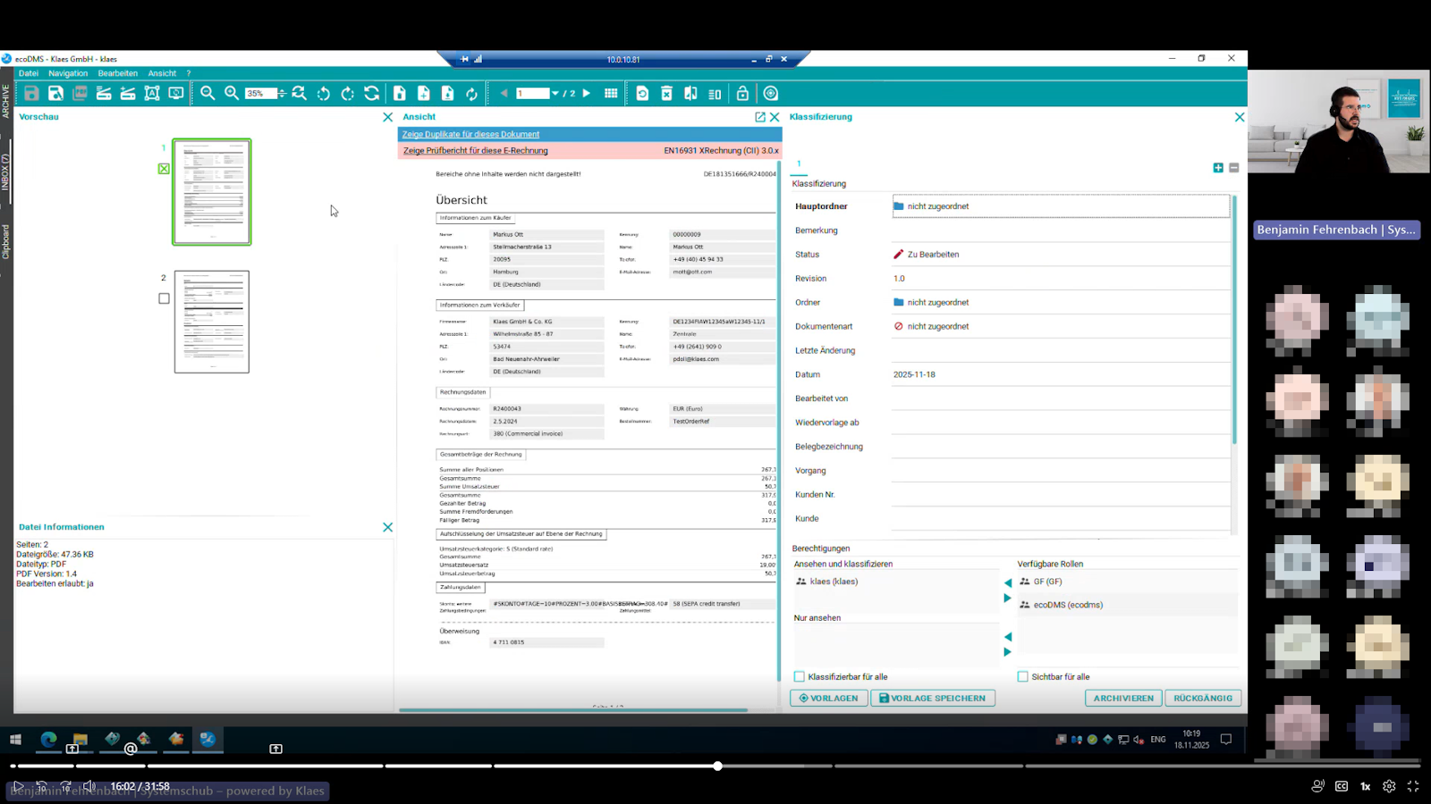 In der Web-Präsentation "Weg von der Zettelwirtschaft!" zeigte Benjamin Fehrenbach (Technischer Vertrieb IT), wie ecoDMS Unternehmen dabei unterstützt, endlich Ordnung ins Dokumentenchaos zu bringen. „ecoDMS gibt es seit 2014 – und heute setzen über 20.000 Firmen darauf“, erklärte er zum Einstieg und gab einen kurzen Blick auf die starke Partnerstruktur der Aachener Software.