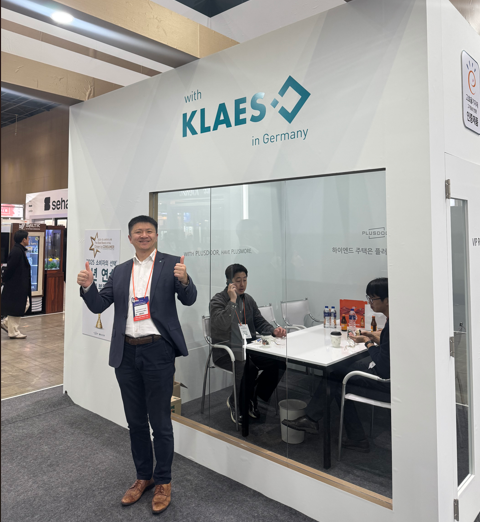 调试期间,恰逢韩国规模最大的建筑盛会——KOREA BUILD WEEK 2026(韩国建筑周)在高阳市 KINTEX 场馆盛大开幕。作为获得 UFI(全球展览业协会)与 AKEI(韩国展览业协会)双重认证的权威展会,这里汇聚了建筑行业的尖端趋势。Plusdoor携其高性能产品重磅亮相,而在其展位上,Klaes的品牌标识也展示其中。这份在韩国建筑周上的“亮相”,不仅是Plusdoor对Klaes技术的认可,更是双方深度信任的最好证明。